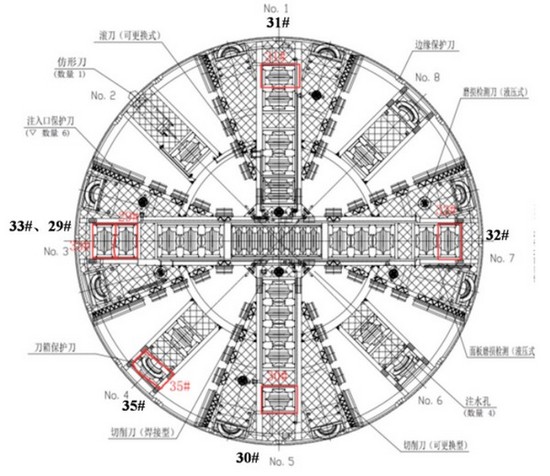 滾刀由刀體、刀圈、擋圈、端蓋、軸承五大部分組成,刀圈是加熱到100~200℃安裝到刀體上。在盾構(gòu)機施工硬巖或上軟下硬、上硬下軟等復(fù)合地層時,中心滾刀在該類地層掘進中磨損較快,而在上軟下硬地層中,滾刀偏磨現(xiàn)象比較常見,因此,刀圈屬于極易磨損件,超過磨損量閾值后則需要進行更換。而盾構(gòu)機開倉更換易損件屬于危大工程范疇,風(fēng)險高、技術(shù)要求高以及工作強度大,同時,也會大大提升生產(chǎn)周期及成本。因此,提高刀圈的使用壽命可大大減少更換次數(shù),降低人力、物力的消耗,節(jié)約成本,也進一步保障生產(chǎn)安全及周期可控,在工程實踐中具有重要的意義。
