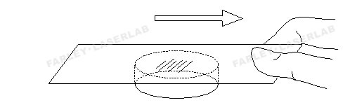 第四步:將擦鏡紙上有酒精的部位放在鏡片上面,先前后小幅度拉動,使擦鏡紙完全吸附在鏡片上面,并使得鏡片上的污染物松動,再輕輕往一個方向拉動。如圖3所示。在拉的過程中,由于擦鏡紙其他地方?jīng)]有酒精,可以吸干鏡片上的多余酒精,注意不要剩余酒精在鏡片上面,否則會形成酒精斑;